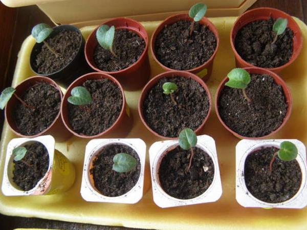 Alle andre handlinger er de samme som når du avler cyclamen ved hjelp av barn. Bladmetoden er et raskt rotingsalternativ. Allerede i 3. uke kan stilken spire. Det gjenstår å gi ham ordentlig pleie.
