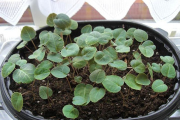 Drivhuset ventileres regelmessig og jorden fuktes. Cyclamen fra frø hjemme vil gi de første skuddene på en og en halv måned. Filmen fjernes umiddelbart, brettet overføres til et kjølig (15-17 °), godt opplyst sted.
