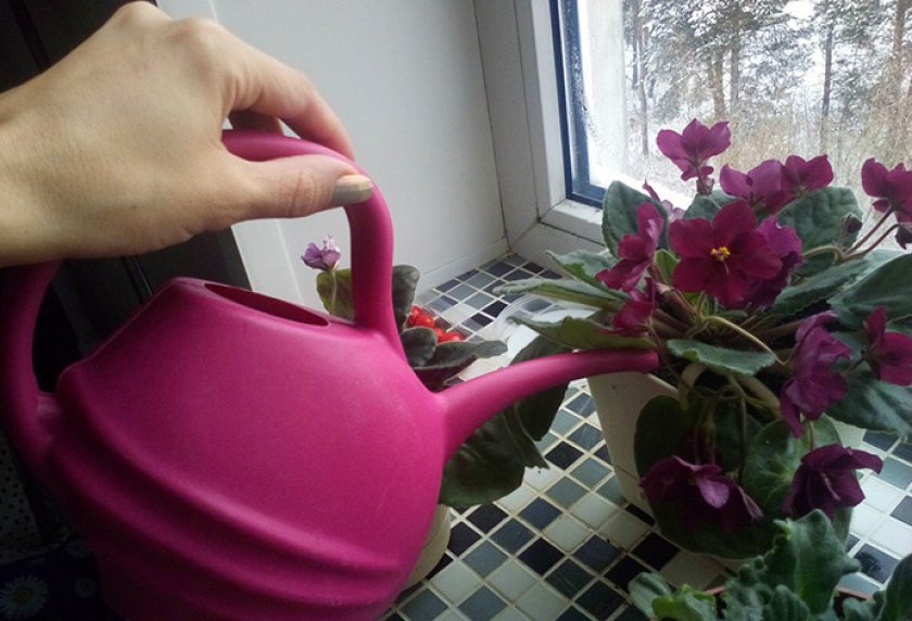 Uansett årstid må du vanne blomstene med varmt vann. Bruk av kald væske vil føre til sykdommer i fiolett og dets forfall. Den ideelle temperaturen er 35 ° C - 40 ° C.