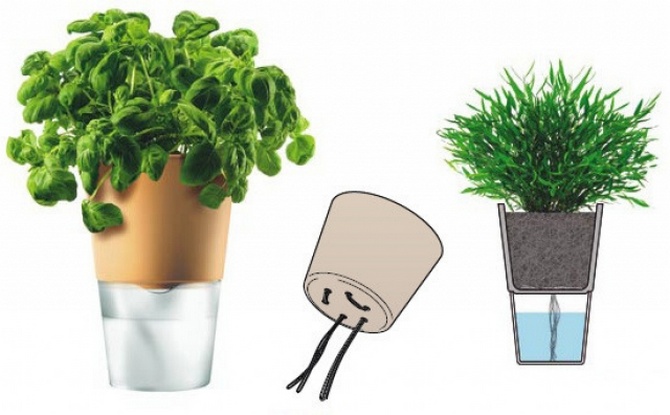 Veken med den ene enden senkes ned i en beholder med vann, den andre enden settes inn i dreneringshullet i blomsterpotten. Hvis blomsterpotten er liten, kan du bruke en plastkopp. Vann helles i den, en beholder med en fiolett plasseres på toppen, men for ikke å berøre væsken. Samtidig er veken i vannet, og stiger opp i dreneringshullet.