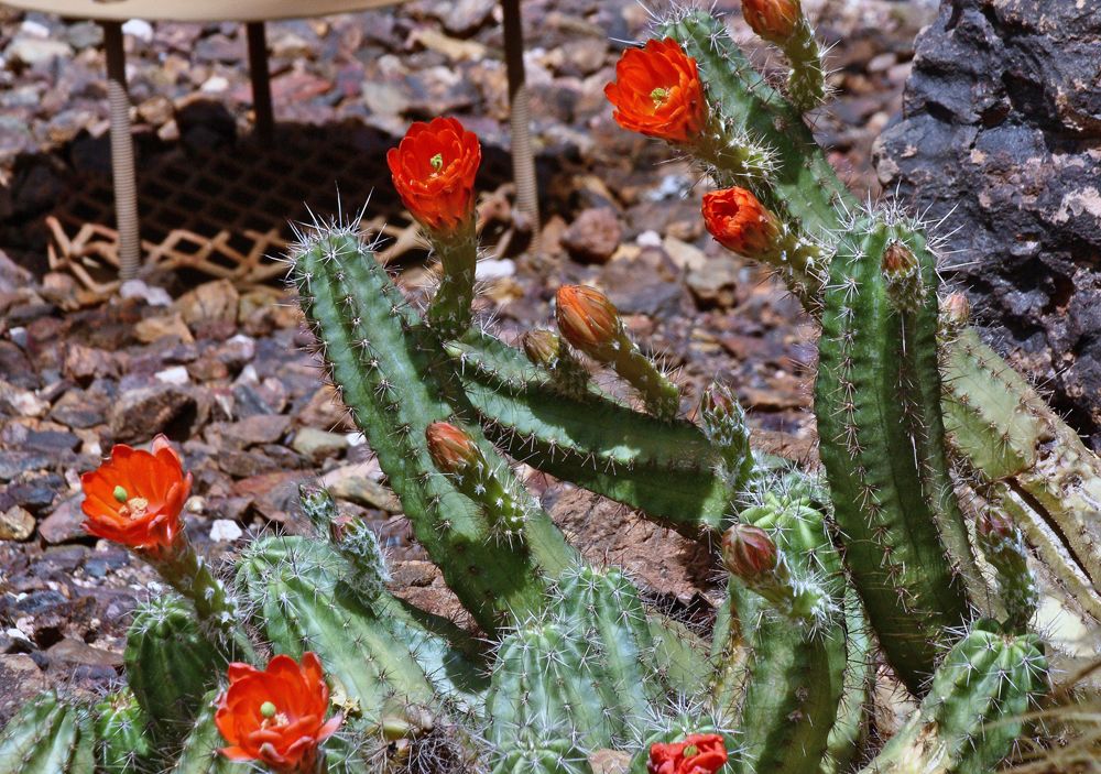 - Cereus er gigantisk. Nå en høyde på 20 m. Har en tett stamme og forgrener seg fra den. Den blomstrer fra mai til juni med blomster av gule, røde, oransje og grønne blomster. Så danner den spiselige frukter.