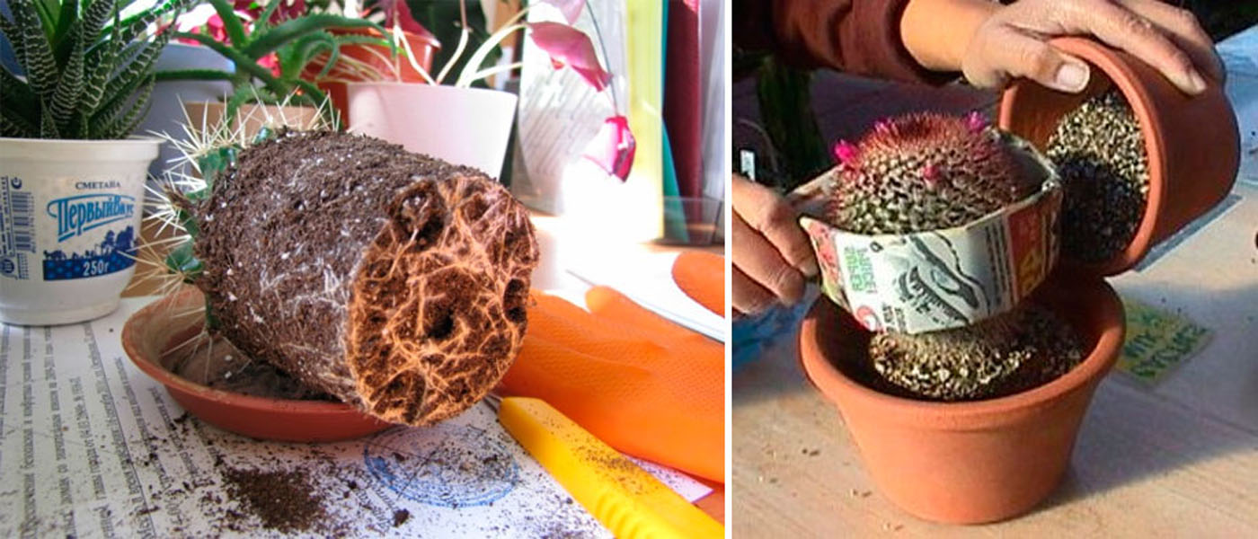 Kaktus blir transplantert etter behov, minst 1 gang på 2 eller 3 år.