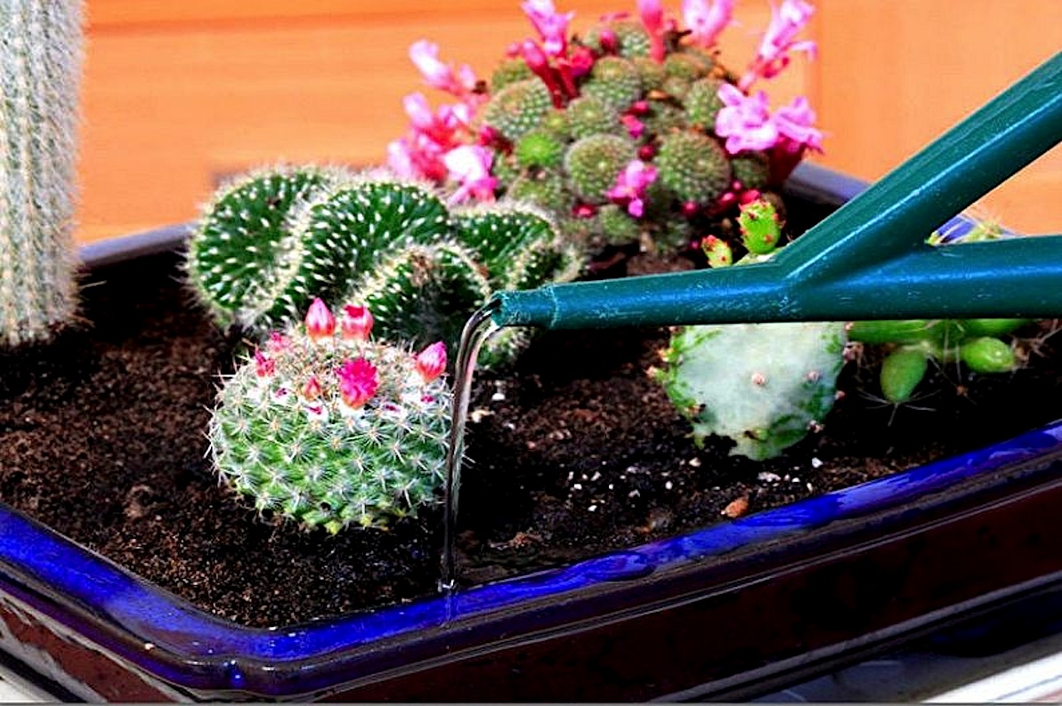 Om sommeren skal ørkenkaktus (xerofytter) og trekantet spurge vannes en eller to ganger i uken; om vinteren er det nok. Det er bedre å gjøre dette om morgenen, slik at jorden om dagen har tid til å tørke ut til en dybde på 2-3 centimeter.
