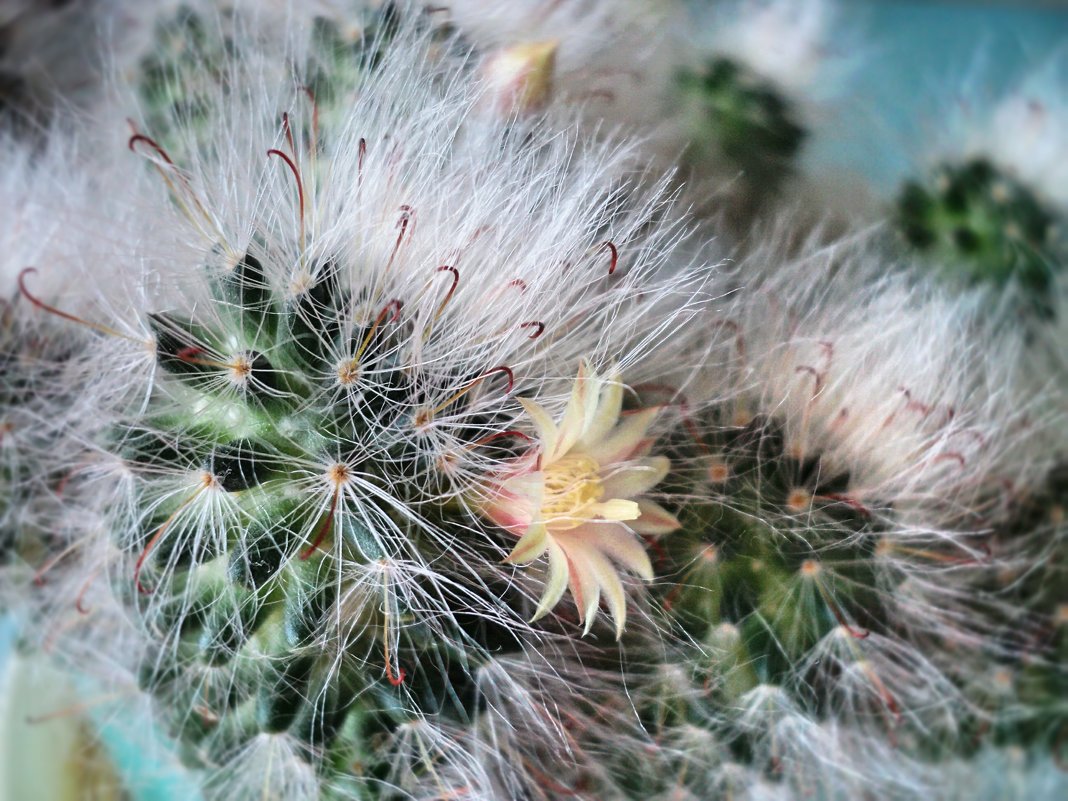 Mammillaria Elongata har små blomster i lysegul eller rosa farge. De samme blomstene kan sees i Mammillaria Karvinsky, Carmen.