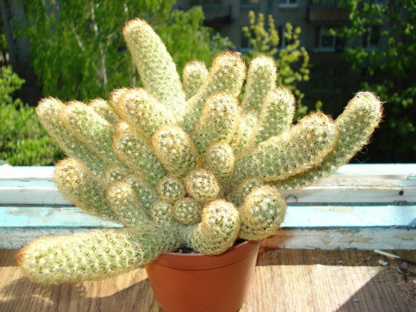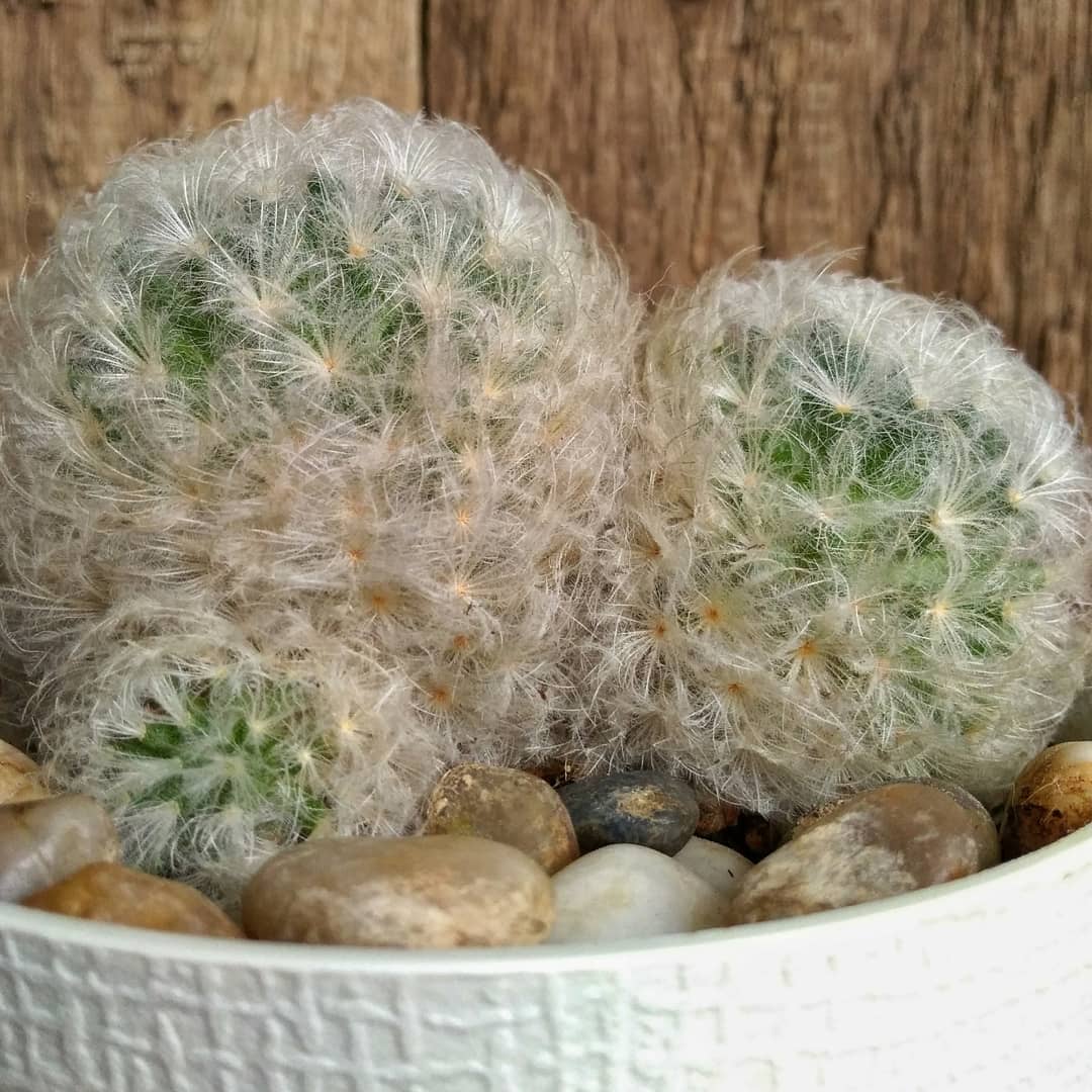 Når den vokser, blir kaktusen til en stor pute dekket av hvitt lo. Diameteren kan nå 20 cm.