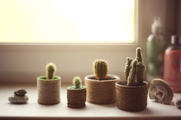 En container for en kaktus kan opprettes fra tilgjengelige verktøy. Dette kan være en gammel kopp eller skål som du kan male med tusjer, vanntett maling eller neglelakk. Dekk pottene med skjell, perler, glitter eller andre nyttige dekorasjoner.