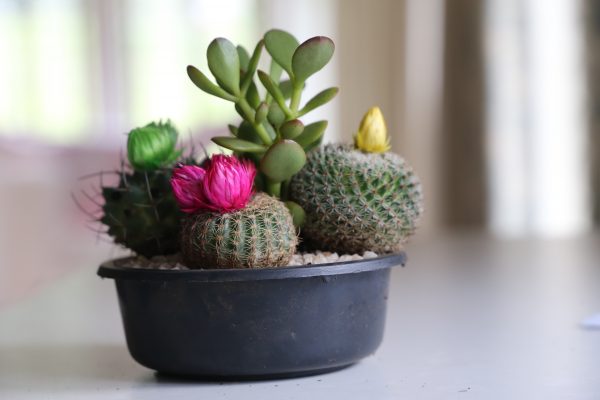 Hvis det ikke er nok plass på vinduskarmen, og det er store potter hjemme, kan du plante flere kaktus i en kjele. For å gjøre dette må du velge planter med et lignende sett med egenskaper, det vil si at de må være motstandsdyktige mot sollys, vokse sakte og sjelden gi avkom. Også, grønne kjæledyr bør ha de samme vanningskravene.