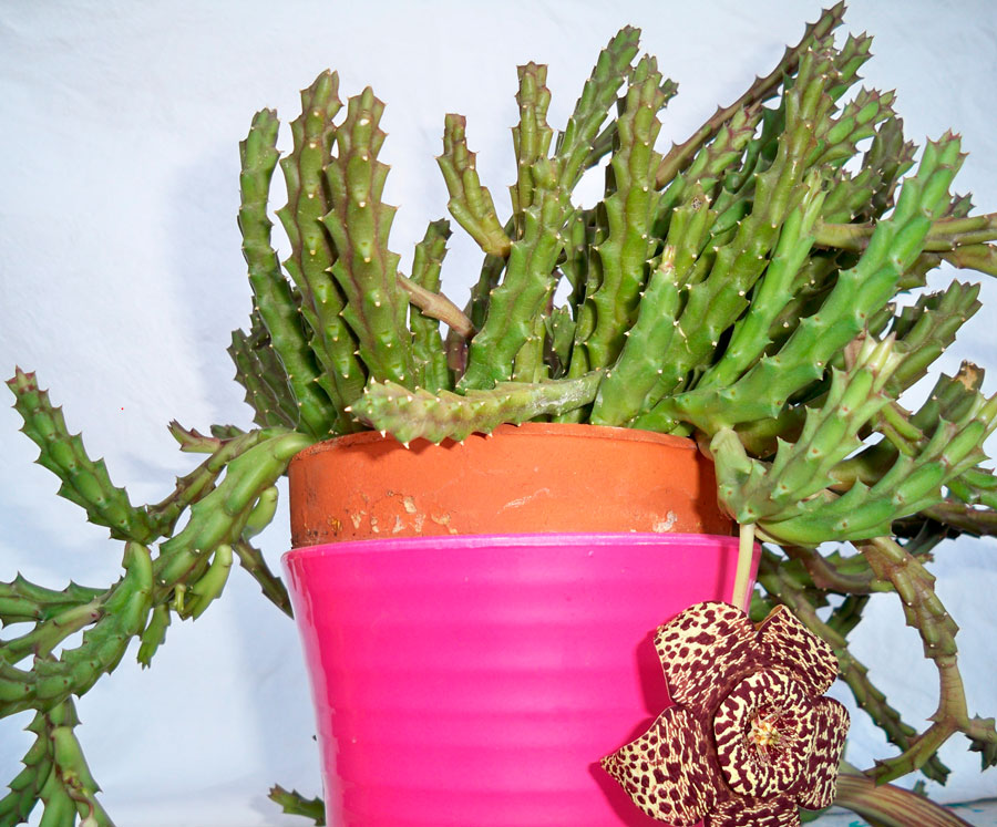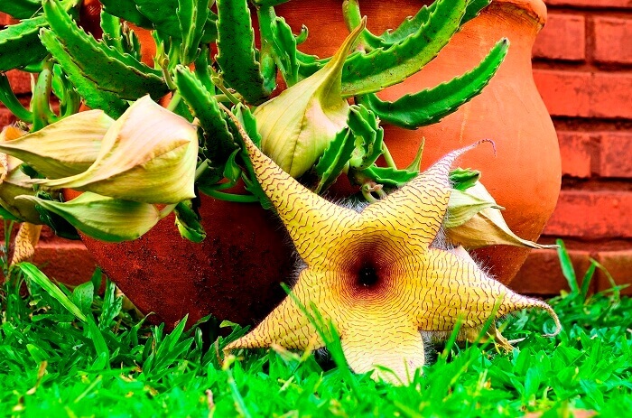 Den flerårige planten Stapelia av Grandiflora-sorten er også blant de fasjonable og ettertraktede inneplantene for de som strever for en ikke-standard løsning innen blomsteroppdrett. Stammen er tetrahedral med bøyde denticles (de er sjelden lokalisert).