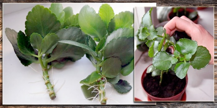 For å bruke dem til reproduksjon må du velge skudd som har vokst til en lengde på 1/3 eller 1/2 av moderplanten. De skilles fra ved hjelp av en kniv og transplanteres i en klar beholder med et underlag. Takket være skuddene vokser den nye Kalanchoe-busken veldig raskt.