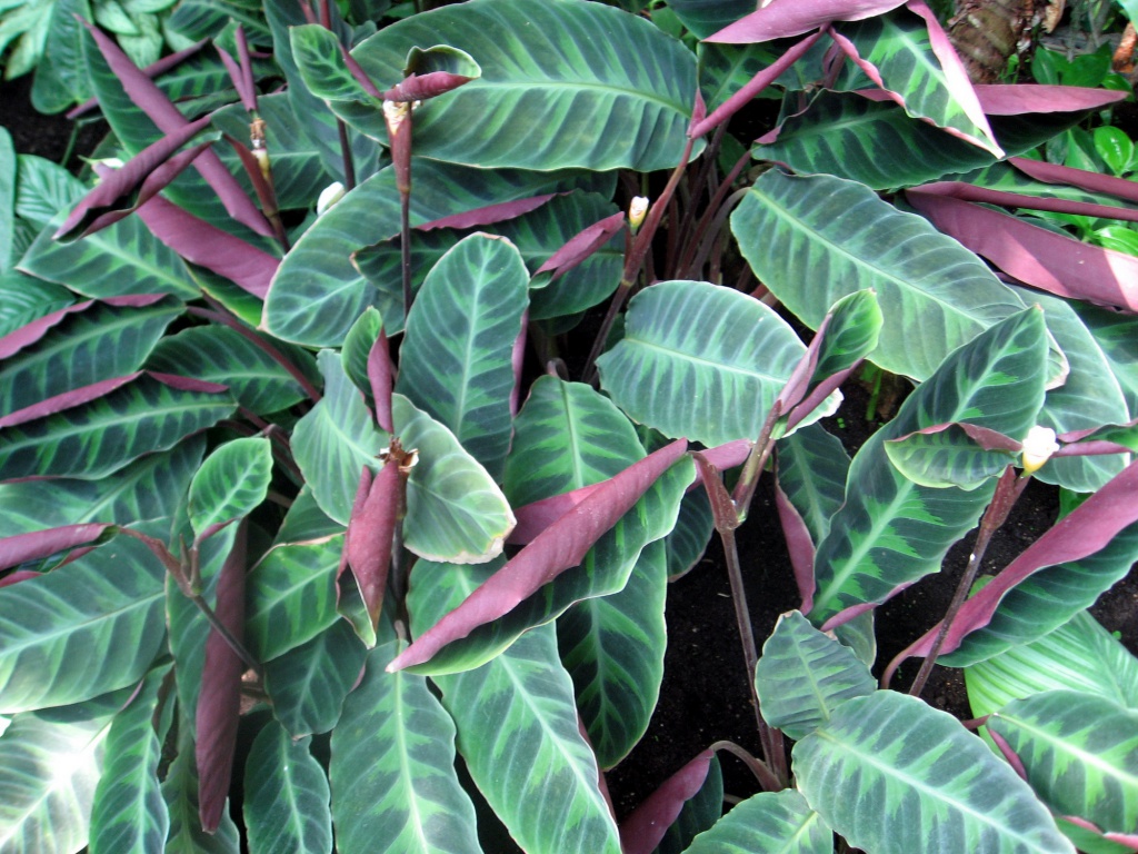 Calathea stripete, eller som det også kalles sebralignende (Calathea zebrina), - med lyse mørkegrønne langstrakte blader i form av en ellipse, hvorpå et lysfarget mønster langs den sentrale venen og mange linjer som strekker seg fra den vinkelen til kanten er tydelig merket.