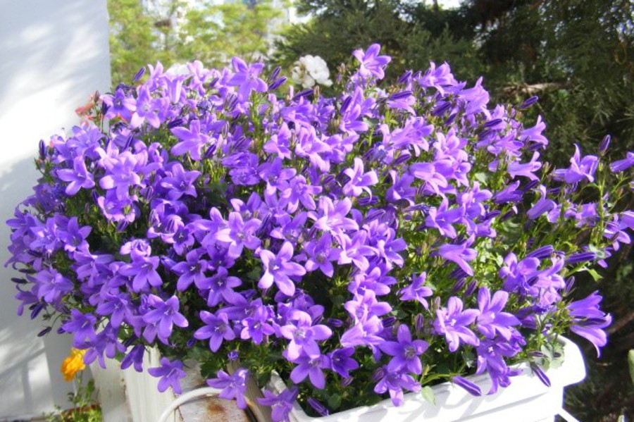 På vinduskarmene til mange leiligheter og hus kan du se en frodig blå blomst. Blomster på den ligner klokker. Det kalles Campanella. Det andre navnet er brudgommen og bruden.
