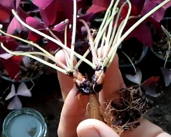 De populære metodene for reproduksjon av Oxalis inkluderer pærer og knoller, som vokser kulturen i vekstsesongen. Separasjon fra moderkulturen og planting i en separat beholder utføres.