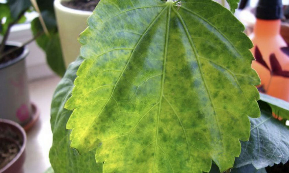 Hvis luften i rommet er veldig tørr, dryss den kinesiske rosen med varmt, mykt vann.