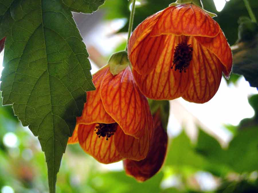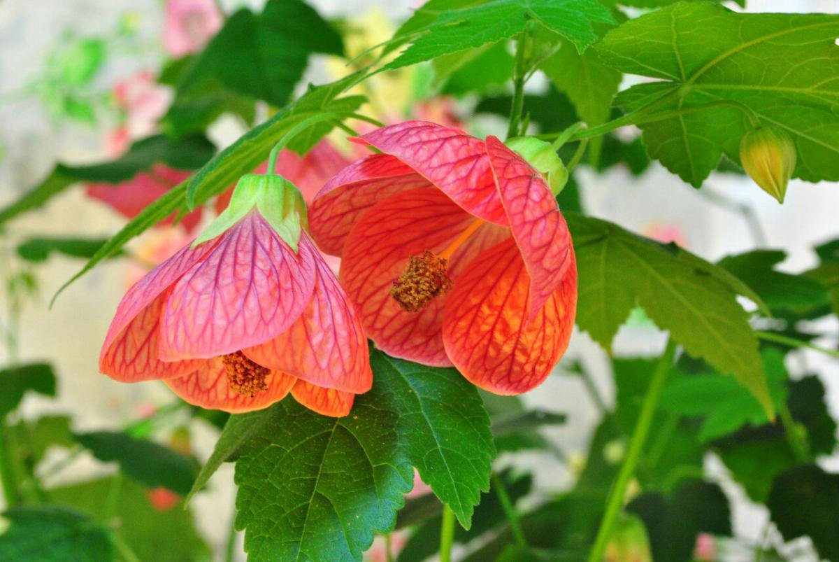 Hjemmeblomst med blader som lønn - stripet abutilon