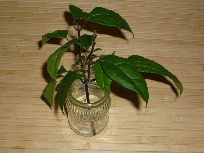 For å gjøre dette må du kutte av stammen, halvbrunne stiklinger ca 8-10 cm lange og fjerne det nederste paret av blader.