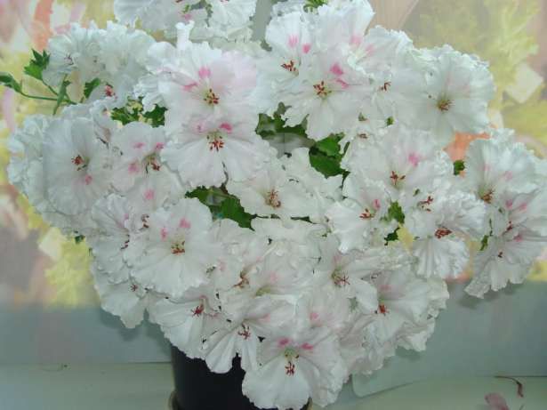 Geranium Angel er upretensiøs i pleie, blomstrer hele sommeren. Blomster kan være hvite, rosa, lilla, lilla.