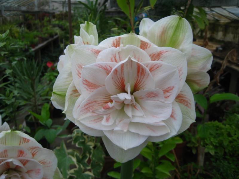 Dette hippeastrumet kan være hvitt, med tynne, tilfeldig fordelte rosa striper på frottéblad. Planten når en høyde på 45 cm. Blomstens størrelse er 22-25 cm.