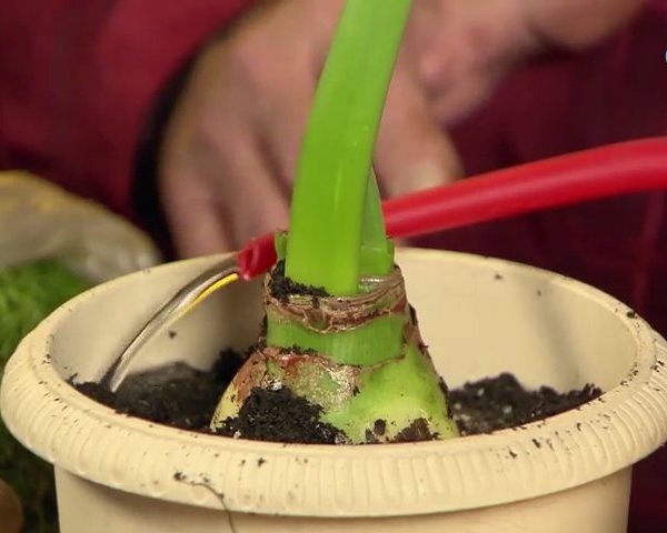 Planten blir matet med spesielle blandinger for løkplanter hver 10. dag til fullstendig hvile.