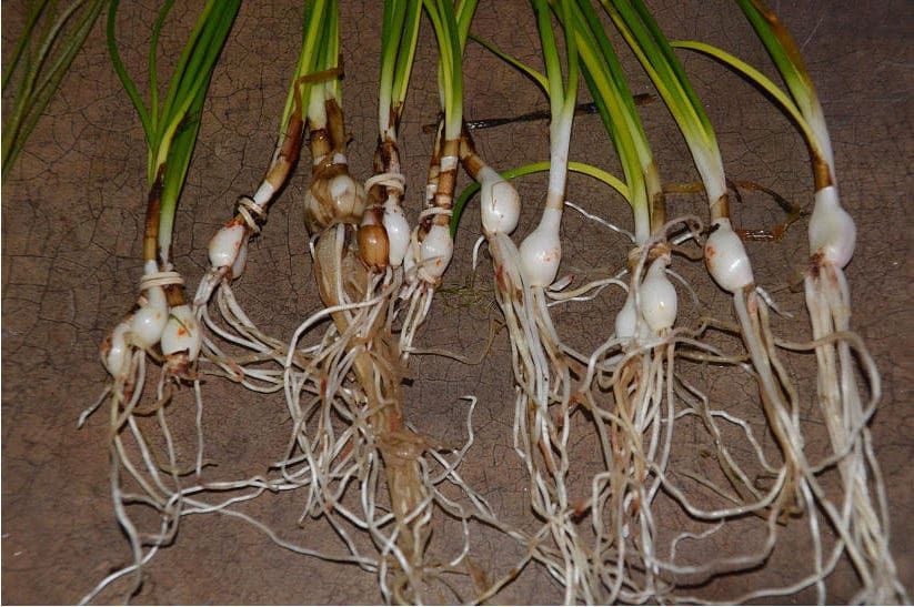 Reproduksjonsalternativet med datterløk under prosessen med årlig plantetransplantasjon er det mest optimale. De dyrkede pærene skilles enkelt fra moderpæren og plantes i en egen pott. Hvis unge planter får tilstrekkelig mengde lys, vil det allerede i neste sesong være mulig å beundre de første blomstene.