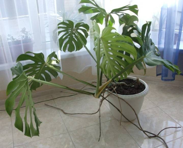 - luftrøttene til monstera kan enkelt kuttes av, men ikke helt. Blomsten vil ikke forringes hvis du forkorter røttene litt og gir den et pent utseende. Selvfølgelig trenger du ikke å kutte av absolutt alt, i så fall kan planten bli syk eller til og med tørke ut. Noen ganger kan bladene bare bli gule.
