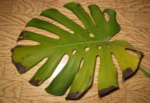 Monstera-blader trenger konstant sprøyting, tørking og polering. Hvis planten om vinteren står i nærheten av varmeapparater, tørker du den oftere slik at løvspissene ikke tørker ut.
