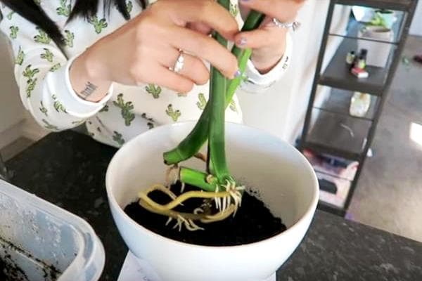 - Det tomme stedet er dekket av frisk jord. I løpet av den første uken skal blomsten ikke vannes.