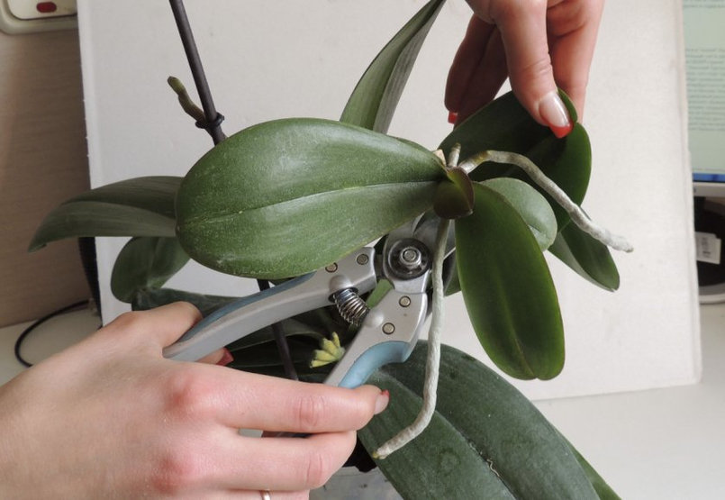 Det foretrukne verktøyet er en beskjæringsaks som forårsaker minimal skade på orkideen.