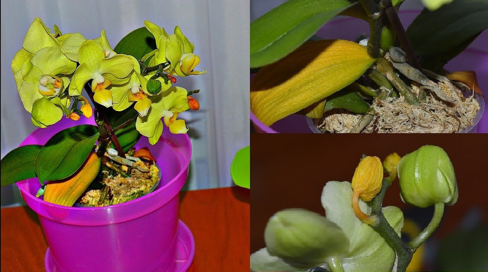 - Overflød eller mangel på næringsstoffer. Superfrekvensen av dressinger påvirker orkideen negativt: bladene, røttene, pediklene tørker ut, kulturen slipper knoppene. Mangel på ernæring påvirker bremset eller opphør av orkidevekst.