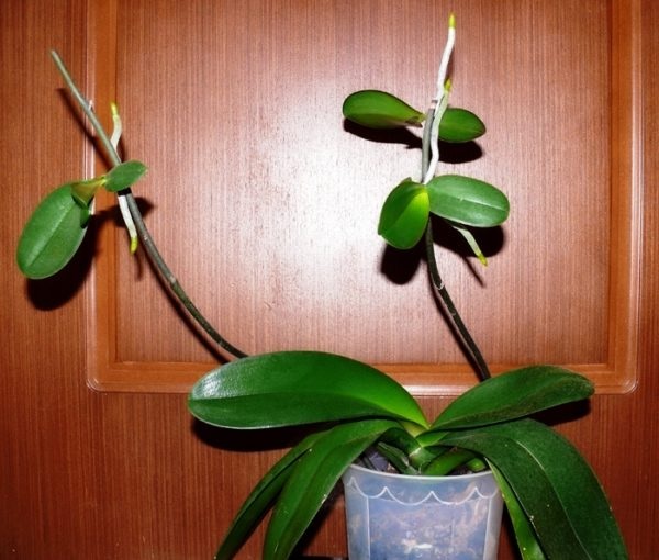 Det er nødvendig å observere blomstene, jevnlig fuktes fra en sprayflaske. Fremveksten av sterke røtter og blader betyr at orkideen har slått rot. Du kan vanne planten som vanlig.