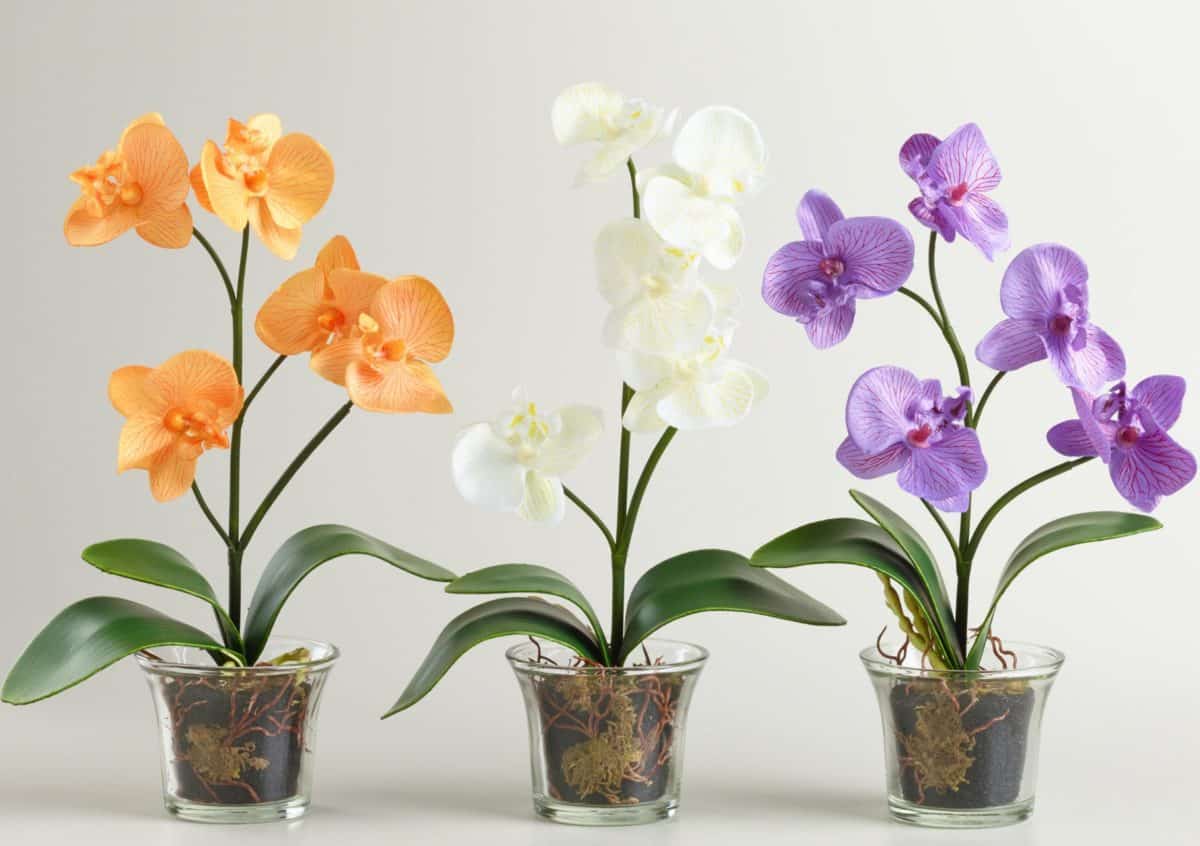 I glassvaser ser orkideen ganske estetisk ut. Slike beholdere er ganske praktiske når det gjelder fordeler for plantens rotsystem, da de gir en god mengde lys til røttene.
