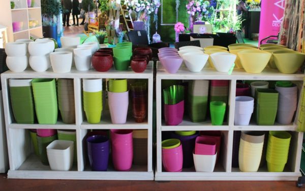 I tillegg til vanlige hvite plastpotter i en blomsterbutikk, kan du velge en blomsterpotte av plast som passer til interiøret i hjemmet eller kontoret, i alle størrelser eller farger, den kan være gjennomsiktig eller matt.