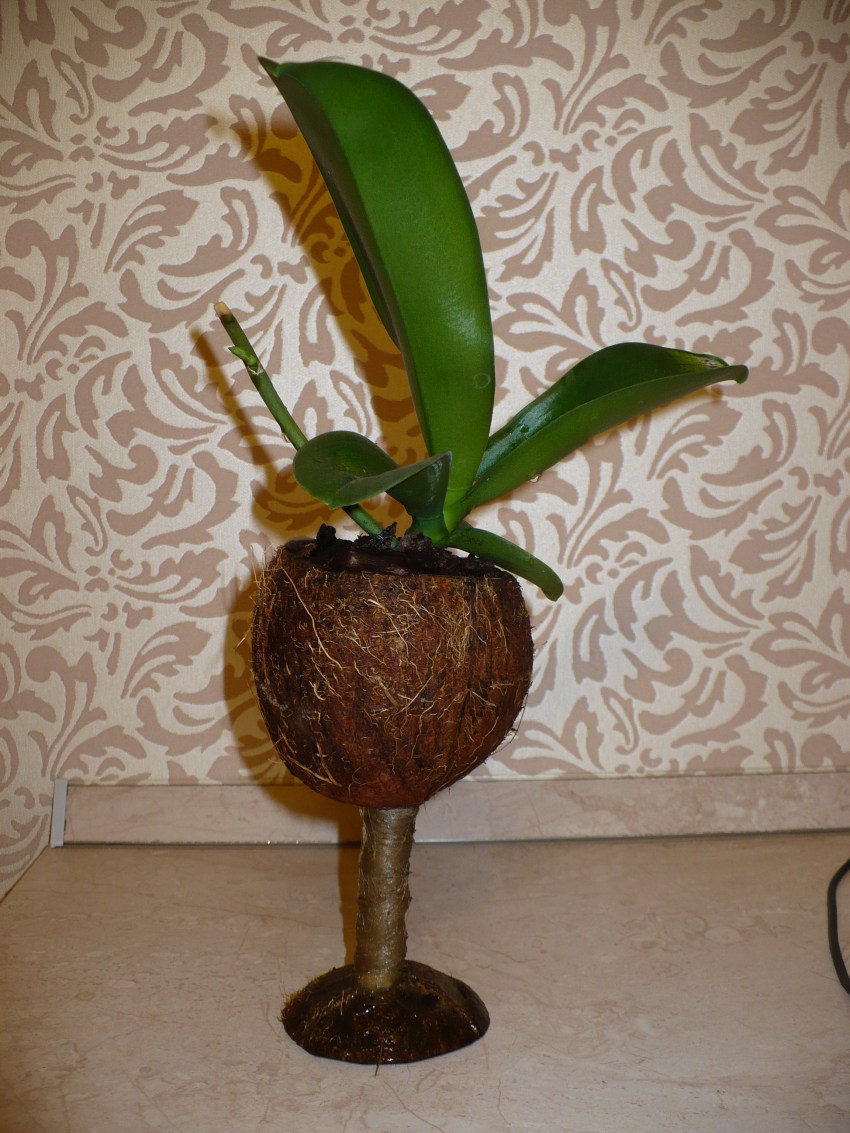 For å gi originalitet til karene der orkideer dyrkes, er oppfinnsomme blomsteravlere klare til å lage blomsterpotter med egne hender. Det kan være kurvkurver, fancy-formede gipsvaser. Noen foretrekker å plante planten i en vanlig stor kokosnøtt. Det er mange alternativer for å lage en hjemmelaget pott - alt avhenger av skapernes fantasi.