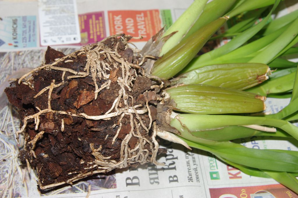Ved forplantning ved å dele busken, utføres prosedyren under plantetransplantasjon. Slike handlinger bør bare utføres etter at orkideen slutter å blomstre. For å forplante en orkide på denne måten, må du følge disse trinnene: