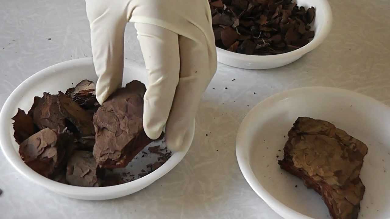 Nå må du forstå spørsmålet: hvordan forberede bark av furu og gran til orkideer? Alle fragmentene av innført bark må sjekkes på nytt, ristes av fra insekter, og deretter begynner du å male til ønsket størrelse (hvis bitene ble høstet store).