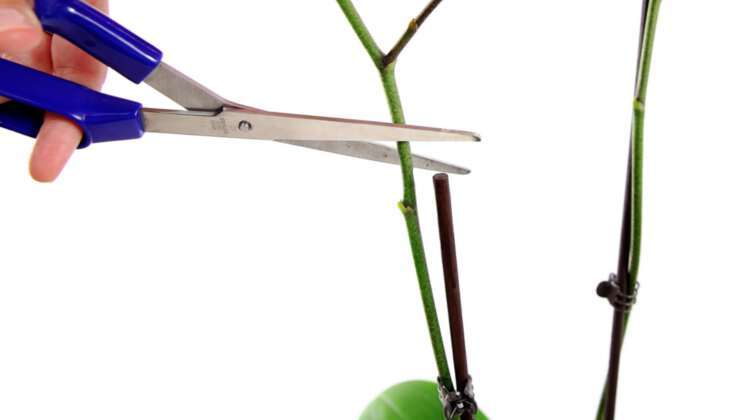 Beskjæring må utføres over knoppen, fordi peduncle ved kuttet begynner å tørke ut. Så hvis du kutter den rett i nærheten av nyrene, er det en risiko for å tørke den ut (nemlig en ny pil vil antagelig gå fra den).