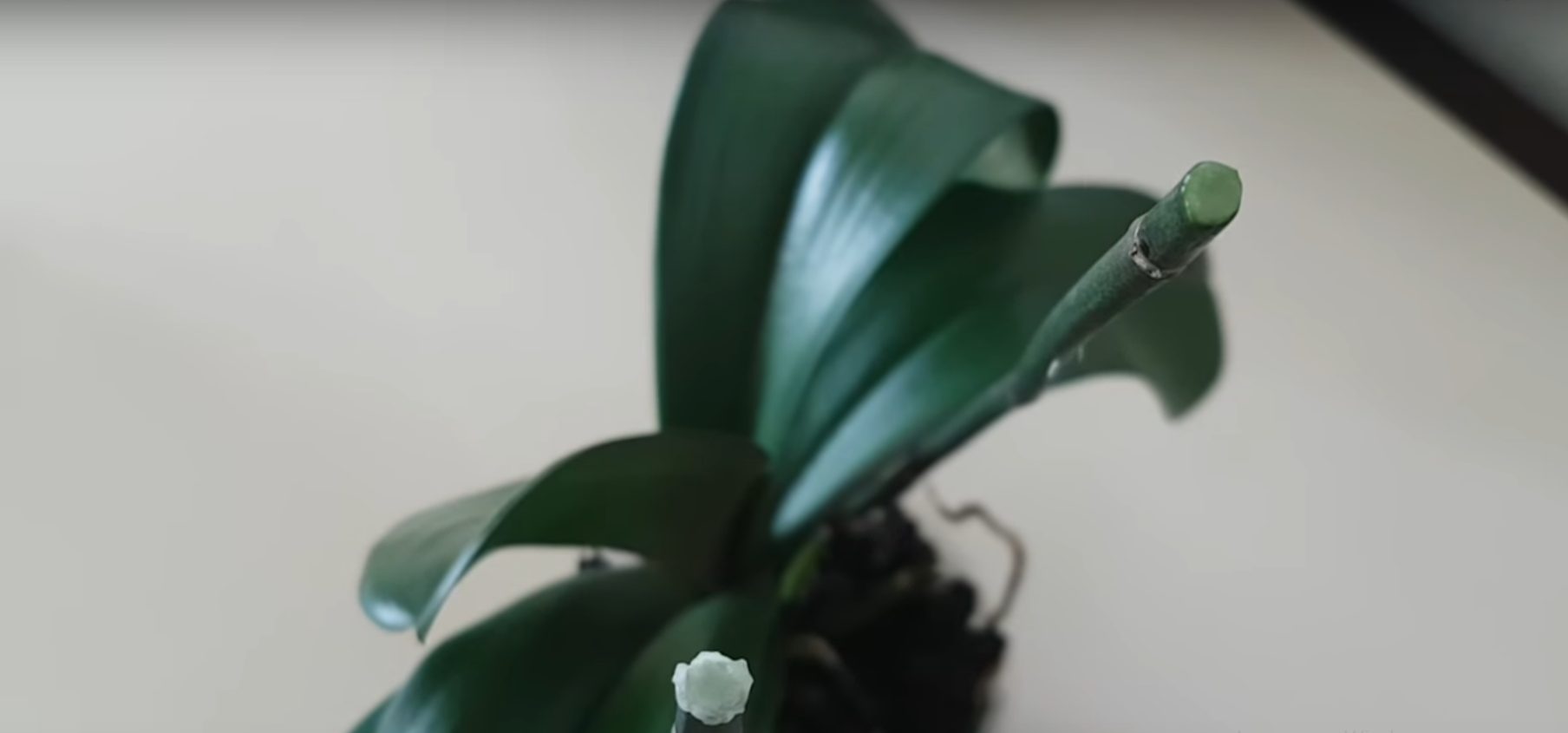 Du kan kutte pilen helt fra bladet der blomsten var, men dette er ikke det beste alternativet: Når en ny vises, vil den vippe hele peduncle, og den vil ikke se veldig vakker ut. Det er bedre å telle 3-4 knopper fra bunnen og lage et kutt der (det er ønskelig at den ikke er høyere enn 20-30 cm fra potten). Den skal trimmes ca 1-1,5 cm over nyrene. Hvis grenen var grønn, kan det komme juice ut under beskjæring. Hvis det allerede har tørket ut, må du kutte det under dette stedet, det vil si kutte av det tørkede området og etterlate et grønt skudd.