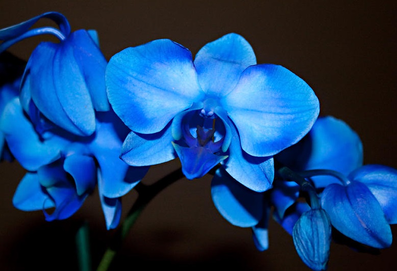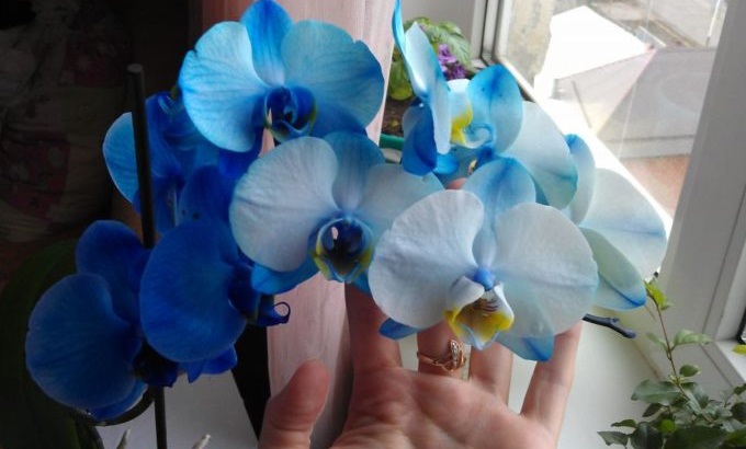 I naturen er det ingen rik blå orkide, men det er andre familiemedlemmer med en omtrentlig knoppfarge. Det er vanskelig å forstå alle typer. En enorm industri jobber med å lage nye varianter, inkludert Phalaenopsis Blue.