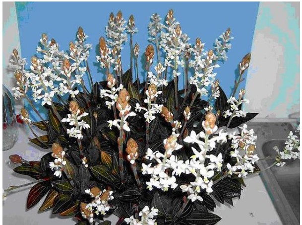 Planten tilhører en rekke orkideer, som ikke er verdsatt for blomsters skjønnhet, men for den uvanlige skyggen av bladene.