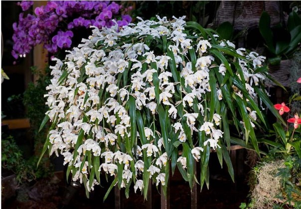 Cellogyne cristata er den mest elegante arten med frynsete hvite blomster 7 cm i diameter. Busken er iøynefallende, består av runde små knoller som langstrakte ovale blader vokser fra. Bare delikate blomster er av dekorativ verdi. Det er ikke vanskelig å ta vare på kulturen i en leilighet, ta vare på alle orkideer. Gryten blir ofte vannet, og gir diffust lys og luftig jord. Under disse forholdene bør blomsterpotten blomstre.