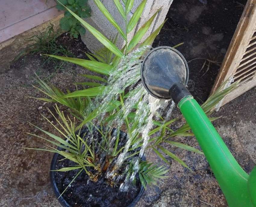 Palmetreet er hygrofilt, det lever veldig bra i et fuktig miljø, og derfor må planten fra tid til annen sprøytes med varmt vann. Du kan installere en beholder med vann ved siden av gryten. Om sommeren reagerer planten godt på å helle ferskvann over bladene. Vann vasker bort støv og oppdaterer bladene. Om vinteren er ikke bading nødvendig, det er nok å periodisk tørke petioles og blader med en fuktig ren klut.