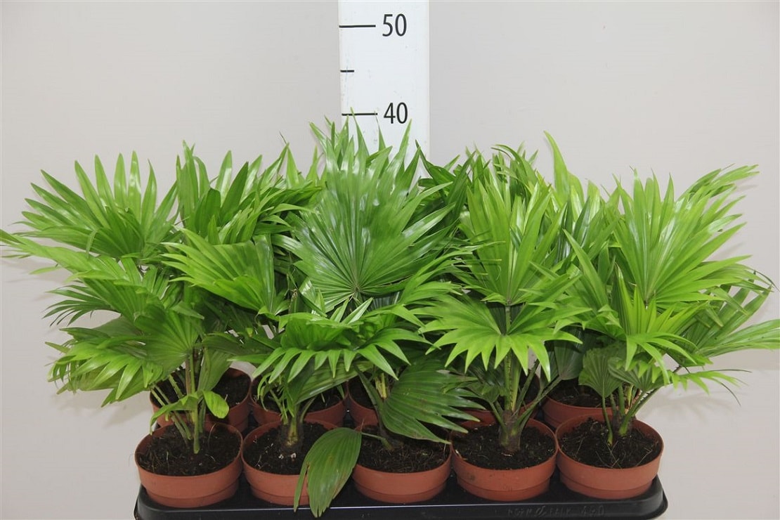 Kinesisk Livistona ("jade") er en av de mest kompakte og vakre artene. Det latinske navnet høres ut som “chinensis livistona”. Blomsten vokser sakte, men den er lite krevende og kan utvikle seg godt i skyggen, delvis skygge. Store fjærete blader har en rik grønn farge, det er ingen torner på dem.