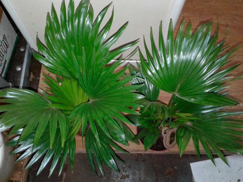 Bladene på håndflaten er veldig vakre - sannsynligvis sprer de seg. Ja, og størrelsen er imponerende - planten kan være opptil en meter i diameter! Bladens farge varierer betydelig - fra grågrønn til mørkegrønn. Videre avhenger det både av typen palmetre og av forholdene for forvaring - begynner med fuktighet og belysning, og slutter med jordens sammensetning.