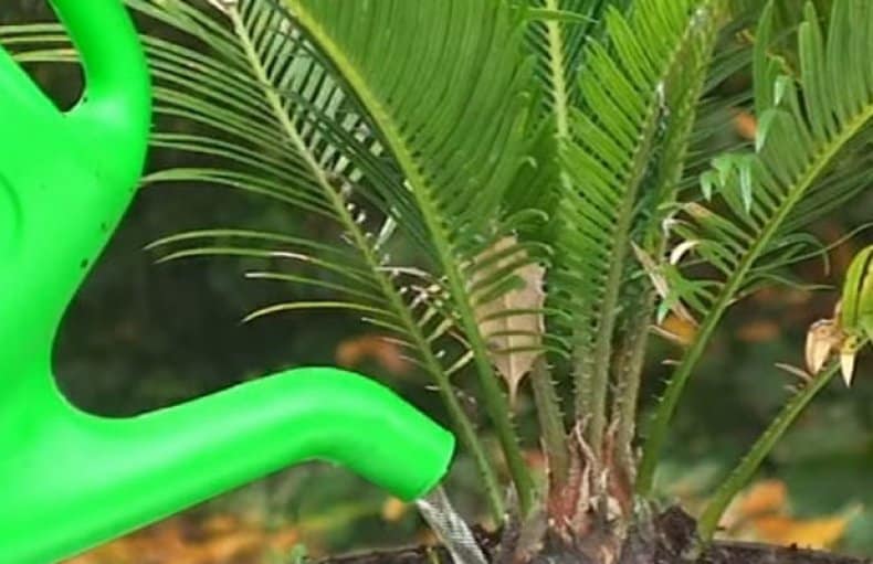 En gang annenhver uke, tørk av palmebladene med en myk, fuktig svamp. En gang hver 7. dag er det verdt å fukte planten fra dusjen, mens vannet skal være varmt og mykt.