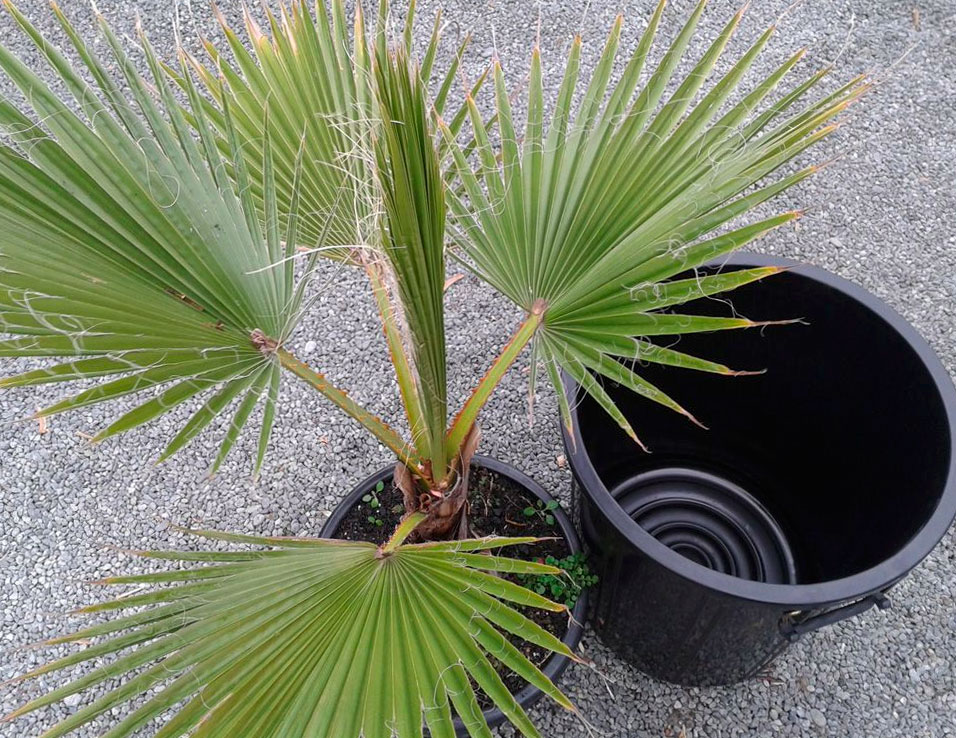 Når Washingtonia blir dyrket av frø, kraftig (inkludert Santa Barbara-sorten) eller trådformet, må spirene før eller senere plantes i potter. Dette er ikke den eneste gangen et palme trenger nyplanting.