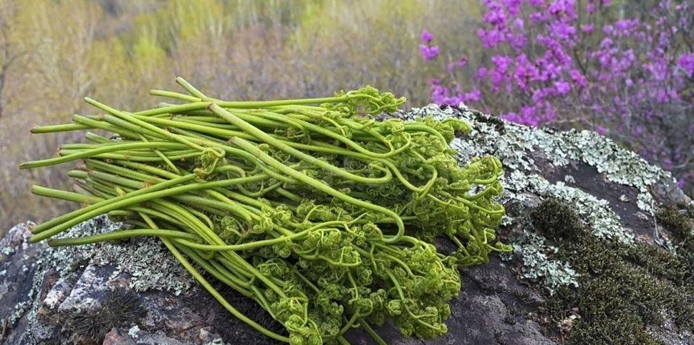Skuddene til en ung bregne - rachis brukes til mat. De dukker opp i begynnelsen av mai og ligner en snegl i utseendet - toppen av bladbladene er pakket inn i en spiral. Skudd høstes før de første bladene dukker opp - en moden plante blir giftig.