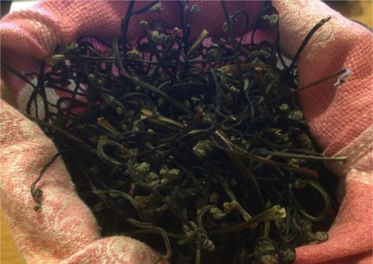 En veldig viktig nyanse i preparatet er hvordan du lagrer den tørkede bregnen. Skudd plasseres i papir- eller tøyposer og etterlates i et mørkt, tørt rom. Ved høy luftfuktighet er det bedre å overføre skjellene til en glassbeholder som lukkes tett. I denne tilstanden beholder produktet sine kvaliteter i to år.