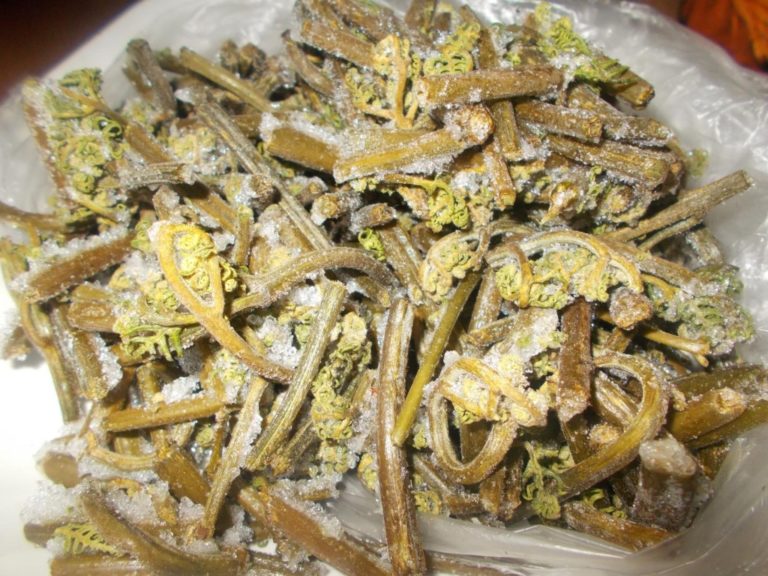 En enkel og effektiv metode for å tilberede skudd som praktisk talt ikke er forskjellige i utseende og smak fra et ferskt produkt, er å fryse bregner: