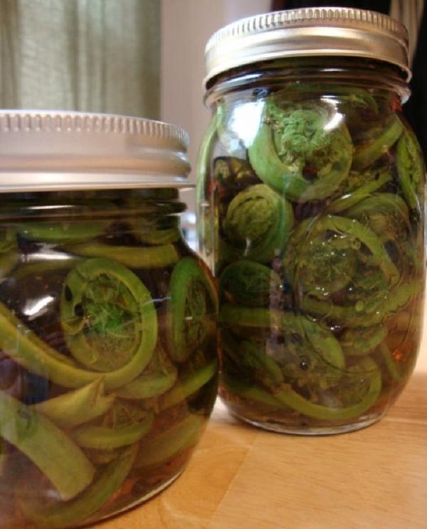 Tørking av spirene lar deg bevare den opprinnelige smaken av planten. Tette og store skudd opp til 20 cm lange velges, pre-blancheres i saltvann i flere minutter, deretter overføres til et dørslag, vaskes med kaldt vann - dette bidrar til å opprettholde elastisiteten og saftigheten til bregnen.