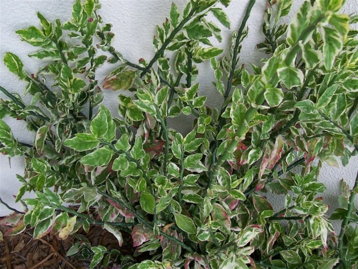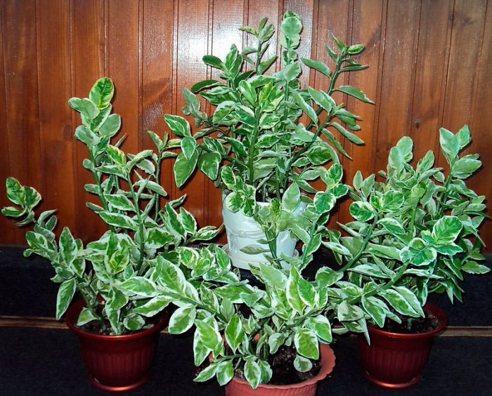 Denne sorten vokser i tropiske klimaer. Løs og lett jord passer for ham. Sikksakkblader er farget knallgrønne. Den har et annet navn - broket pedilanthus.