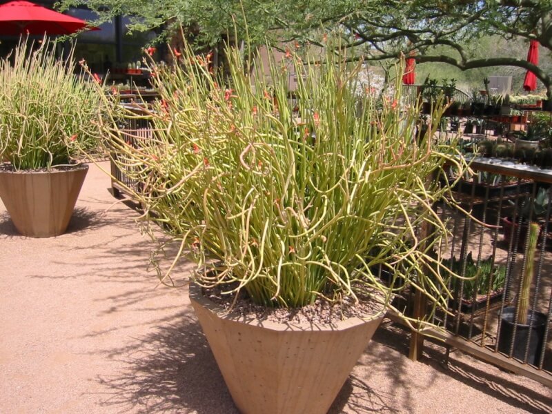 Pedilanthus-potten kan være laget av plast, leire eller keramikk. Beholderens størrelse skal tilsvare størrelsen på røttene.